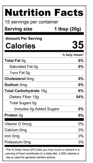 Ingredients: Soluble corn fiber (resistant dextrin), vinegar, red chili peppers, monk fruit extract. Not a low-calorie food. See nutrition information for calorie, sugar, and saturated fat content.