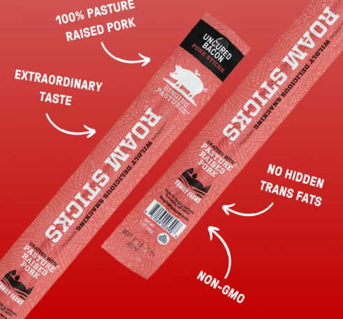 Singing Pastures – Hickory-Smoked Pork With Uncured Bacon Roam Sticks