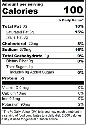 Ingredients: 100% pasture-raised pork, water, uncured bacon* (pork, salt, celery juice powder), sea salt, non-GMO dextrose (used to initiate fermentation), 2% or less of the following: cherry juice powder, celery juice powder, black pepper, lactic acid starter culture, stuffed in a dye-free beef collagen casing.